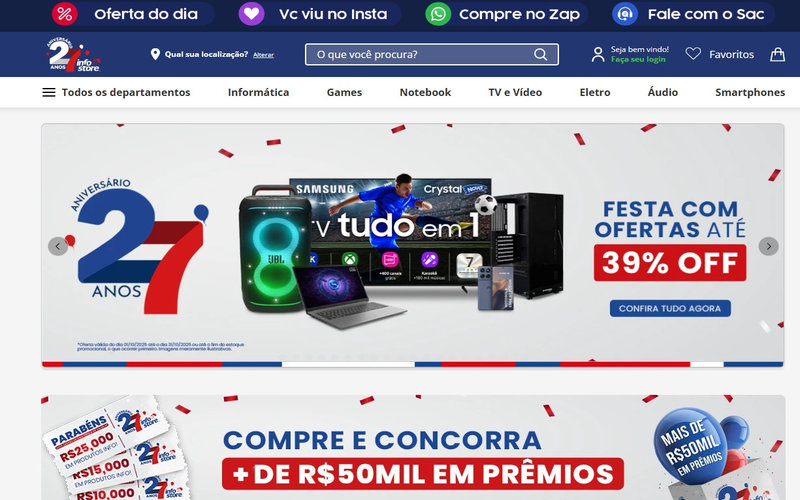 Para alegrar qualquer caçador de ofertas, a Info Store promove campanhas exclusivas, com descontos especiais de aniversário (#NIVER27ANOS) e produtos selecionados com até 48% OFF em diversas categorias, como games, notebooks e eletrônicos.