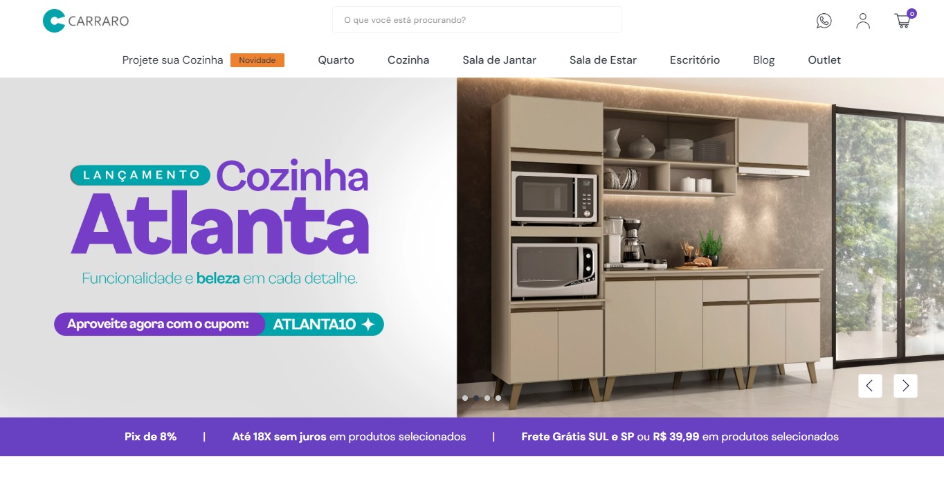 Página inicial do site da loja Móveis Carraro